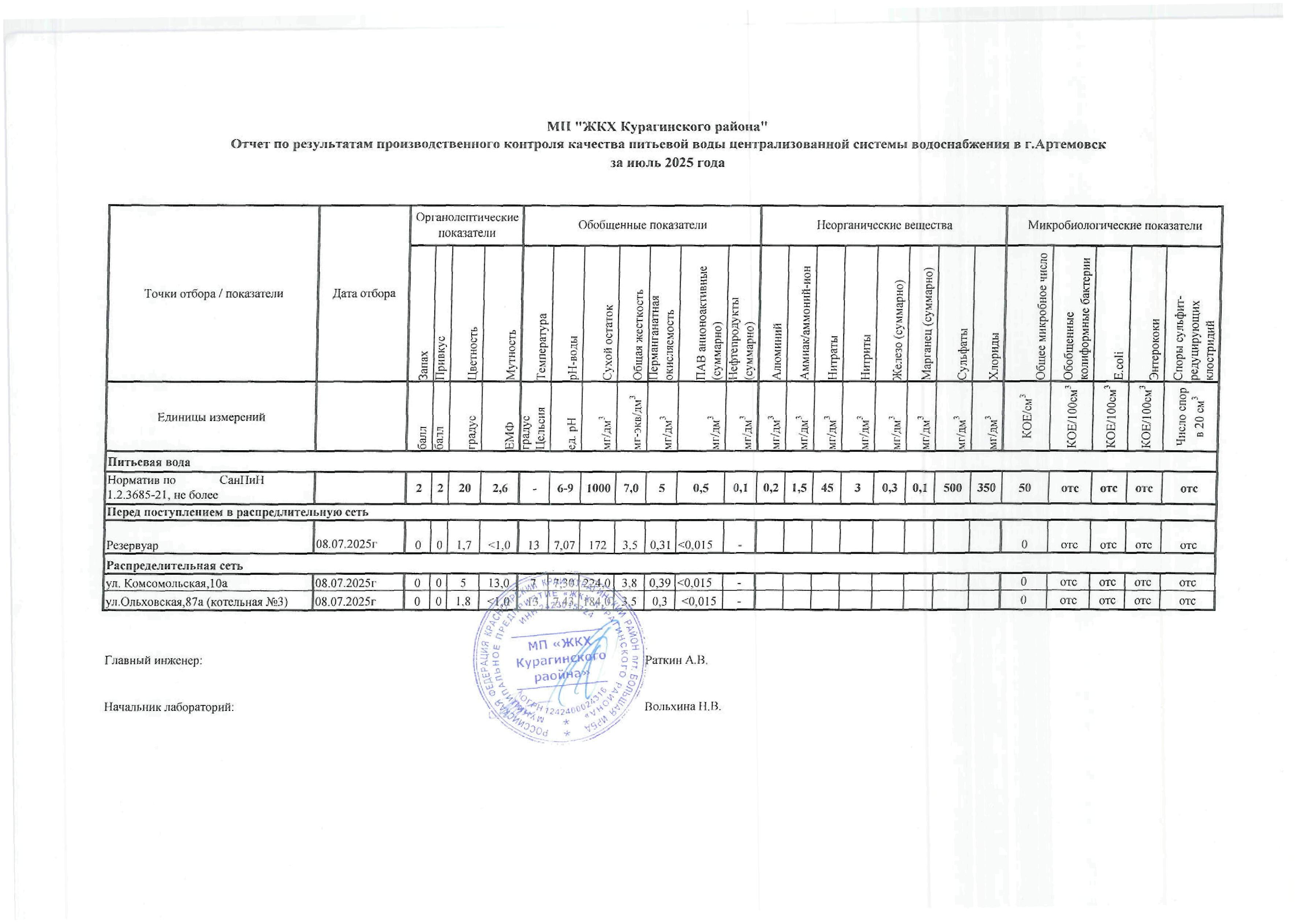 Отчет по результатам анализа воды